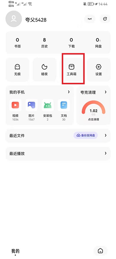 2、然后在进入到另一个界面中之后,就需要点击上方的【工具箱】;
