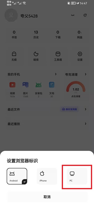 夸克浏览器怎么改成电脑版