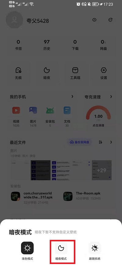 夸克浏览器怎么设置夜间模式