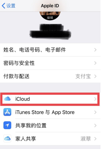 2、然后在Apple ID界面中,找到【iCloud】,然后点击进入到此功能界面中;