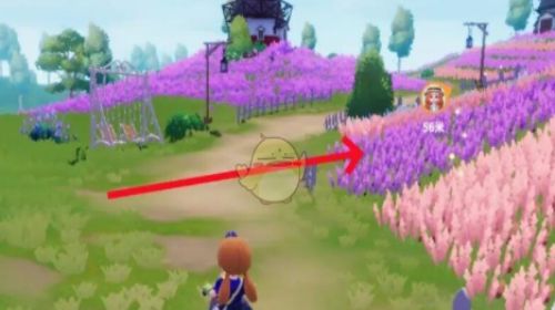 1、进入游戏后打开地图,跟随指引来到花田附近。