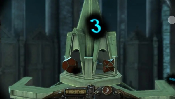 6、打开永恒之眼,拖拽调好齿轮位置,拉动右侧的拉杆,前往二楼,根据右侧木柜的锁孔调好钥匙,再拉动两侧的把手,楼梯降下。