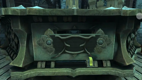 17、将绞轮转轮插入花坛右侧上的插孔中并旋转它来获得石头装饰,然后将石头装饰插入右侧的石柱中并得到面具。
