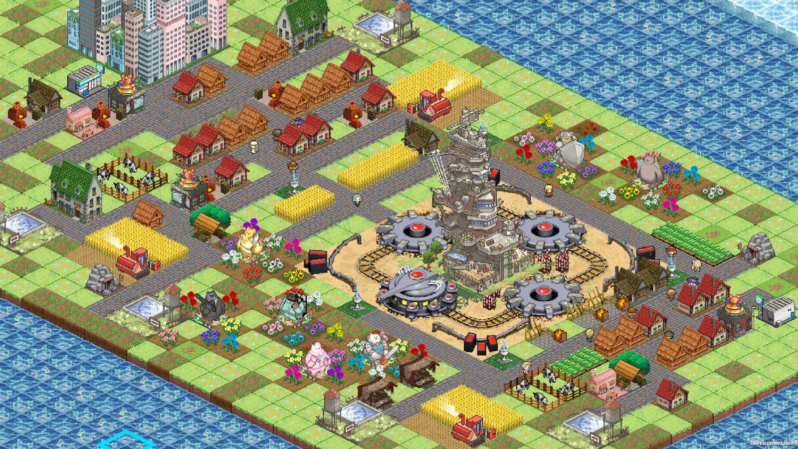 玩家可以建造各种设施来增加居民数量和资源,建造战斗所需的防御设施,并强化自己的角色。为了保护自己的城市不受强大 Boss 的攻击,请坚持到准备好用大得离谱的光束炮进行支援攻击,并用超级刺激的攻击击败 Boss。