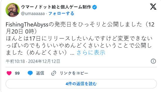 据悉,Steam版《深渊钓鱼》是在免费版itch.io的基础上进行升级而来的。Umar表示,Steam版允许玩家对窗口高度进行一定的调整,并且与免费版相比发生了很大的变化,尽管他没有透露具体的细节。他强调说,已经玩过免费版的玩家在购买Steam版时不会觉得浪费金钱。