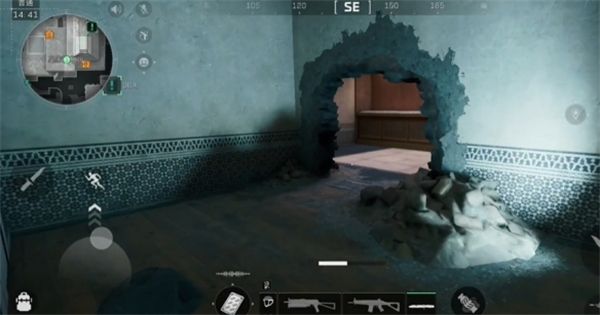 在房间深处,你会发现一个破口。通过这个破口后,立即转向,继续你的探索。