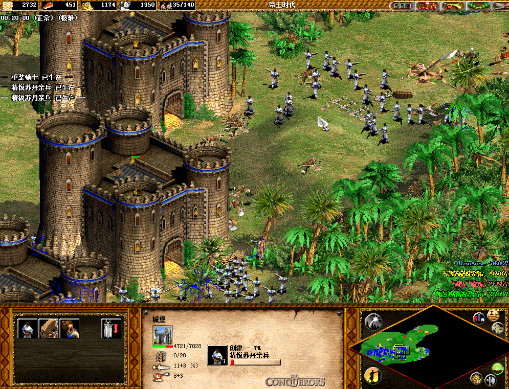 一旦拥有了可观的经济和相应的科技升级,就可以开始大规模生产哥特步兵了。记得要不断生产村民,以维持资源的稳定输入,保证能源源不断地输出哥特步兵。