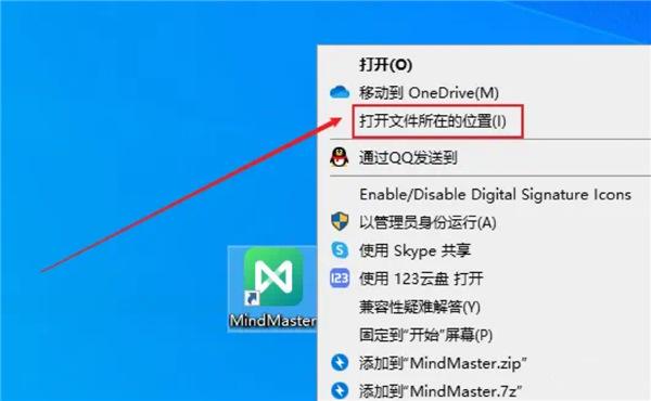 10、回到桌面,点击MindMaster思维导图图标,单击右键,点击【打开文件所在的位置】