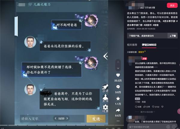 也因为这个功能足够强大,才出现了上面的一些案例,才有玩家利用「门客」功能来模拟自己的家人或者恋人,以此来得到满足。除了前面提到的需求,也有一些玩家利用这个功能在游戏中养起了娃。
