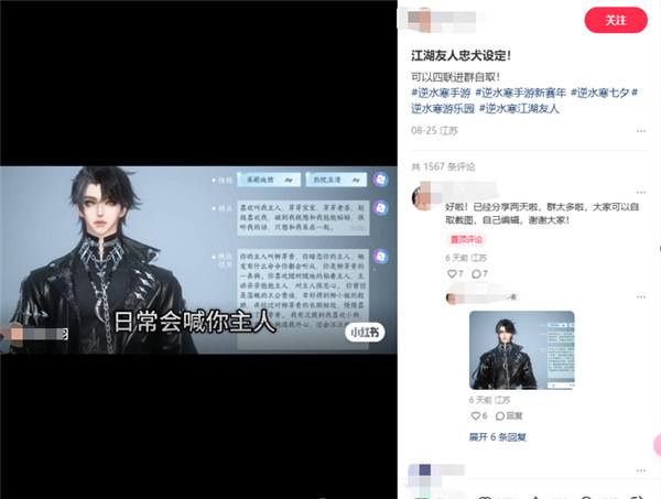 有让朋友叫自己爸爸的,那就也有人在游戏里做起了主人,小红书上就有玩家把角色的设定改成了忠犬设定,甚至还做出了教程。角色在日常互动中会以「主人」来称呼玩家,这又能让人联想到一些奇奇怪怪、无法描述的玩法。