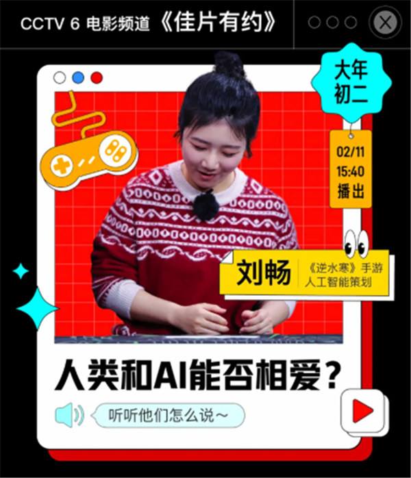 说的再多其实也还是《逆水寒》手游自己的事,但这并非《逆水寒》手游圈内自嗨。央视的CCTV6电影频道《佳片有约》栏目就曾邀请《逆水寒》手游的人工智能研发专家和人工智能策划做客演播厅,对AI游戏进行深入探讨和展示。