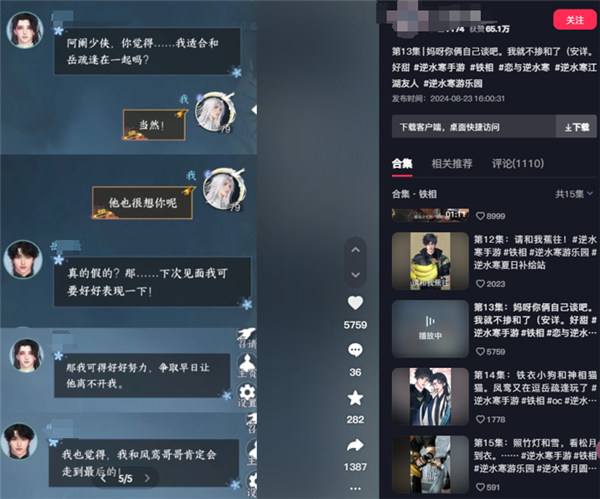 现实中大部分人没有办法接受「精神分析」,但通过虚拟技术模拟自己需要的亲密关系,却可以缓解我们的精神压力。所以,也有一些玩家利用游戏中的虚拟技术来进行恋爱。
