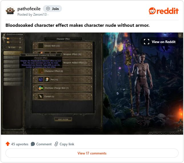 不过,显然 GGG 团队还是发现这个问题,因此现在这个特效已在商城下架(暂时性),等待走光的错误修复后才可能会恢復上架。
