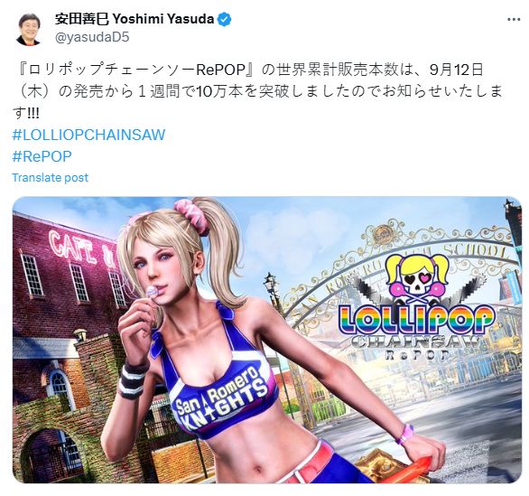 经典丧尸砍杀游戏《电锯糖心RePOP(LOLLIPOP CHAINSAW RePOP)》已于9月12日正式发售,一经上线便受到了粉丝们的喜爱。近日,游戏制作人安田善巳宣布,《电锯糖心RePOP》首周的全球销量现已突破10万份。