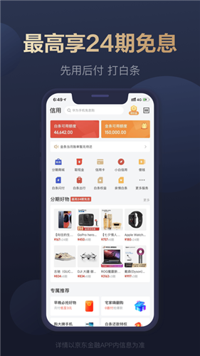 2、 借贷:京东金条借款服务、京东白条先消费后付款,适度消费开启信用生活