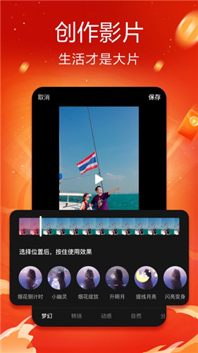 超多美颜滤镜、激萌自拍表情、海量背景音乐,功能强大易上手,创作属于自己的15s短视频,一秒编辑变大片;