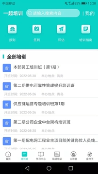 山东电力职工一起培训系统,培训班:员工在线进行报名、报到、签到、评估。