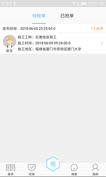 最大化解决建筑市场中大师傅、消费者无法快速、合适匹配的痛点,给予大师傅一个全新、完善的接工平台,给予消费者一个全面、高效的寻工平台,将供求双方完美对接,现有指定派单,发布抢单任务的订单分发模式,订单接不停