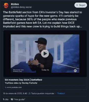 近日EA在近日举办的投资者活动中公开了一个消息:《战地》系列将迎来全新开始。EA决定效仿动视的模式来对游戏开发进行改革,包括更换所有管理团队成员并成立多个新工作室,旨在...