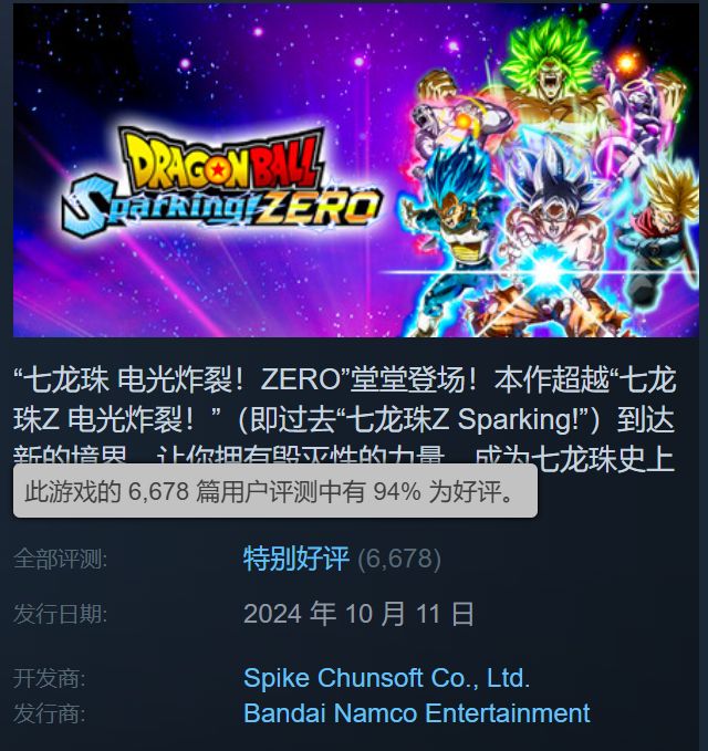 《七龙珠:电光炸裂!ZERO》即将于10月11日发售,预购豪华版和终极版的玩家现已开启抢先体验。截稿之前,本作在Steam平台全部评测为特别好评,6678条用户测评中,好评率高达94%。...