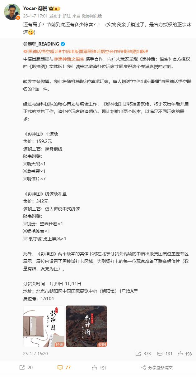 今日,中信出版集团旗下备受欢迎的流行阅读品牌——墨狸工作室,正式在其官方微博平台上宣布了《黑神话:悟空》影神图实体版的问世。...